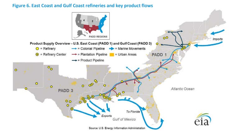 About half of American’s total oil refining capacity is on the Gulf Coast. That’s according to the last Refining Capacity report from the US Energy Information Administration (data current through Jan. 1 2025). Major owners of the largest facilities include Marathon Petroleum, ExxonMobil, Valero and Citgo.