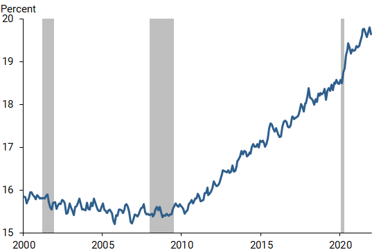 Then there’s this chart, from the Federal Reserve Board of San Francisco, which shows the percentage of retired individuals as a share of labor force nonparticipants.