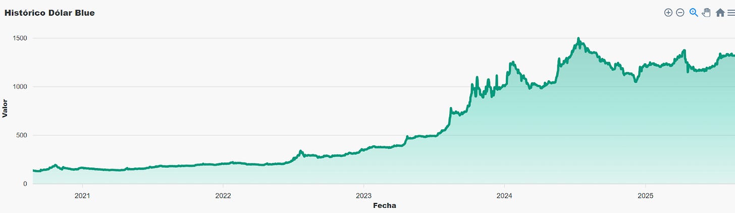 The good news is, the dollar/peso exchange rate has stabilized and there’s no longer a vibrant black market for pesos as Milei has aligned the official exchange rate with the black market rate.