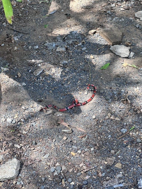 We also had an encounter with a coral snake on Saturday.