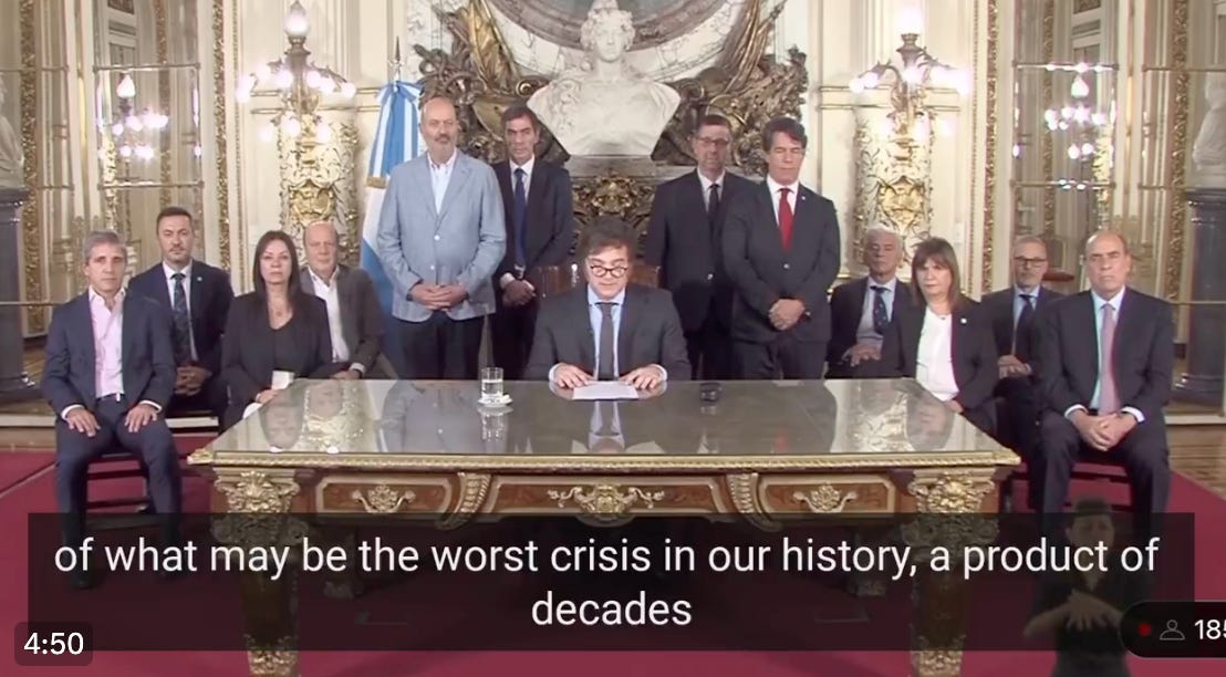 Every society, since the days of the Sumerians and human sacrifices, sorts itself into an elite – an aristocracy, a priesthood, a ruling class – and everyone else. As time goes by these elites – almost by definition; they are capable, well-informed and intelligent – find ways to improve their status and add to their wealth. That’s the process that Milei is trying to unwind in Argentina. The ‘political caste,’ as he calls it, has strangled the real economy in order to give itself special privileges and benefits. Here, you can watch the opening to his speech, yesterday, in which he strikes at the root of the problem. (Click here)