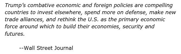 We listened to some of Trump’s speech. After the plane was fixed, and he arrived in Davos, Mr. Trump lumbered up to the podium...and rambled on, making a number of provocative points, including the most dangerous mistake in modern economics, He confused the source of wealth with the consumption of it. Some economists (and many politicians) do so intentionally. They promise to make us richer by printing money and thus increasing ‘demand.’