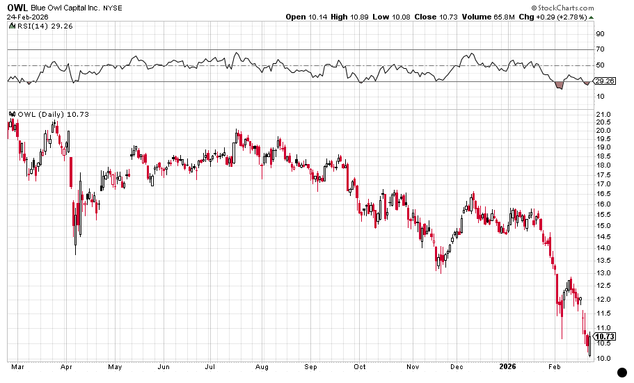 Blue Owl Capital is a big player in the $1.8 trillion private credit market. That’s where pension funds, wealthy individuals, and insurance companies seek (and in bull markets…get) higher returns by loaning money directly to firms that otherwise can’t get money from banks (banks are also big lenders to private credit firms). Do we have a problem lurking in the shadows?
