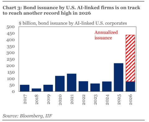 That’s not good for a stock market that’s been riding the wave of AI hype for four years. And with bond issuance from AI firms on track to hit another record high in 2026, you have all the classic signs of an investment bubble with billions in mis-allocated capital.