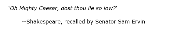 Many scapegoats were proposed to explain the Watergate break-in. Many were the ‘conspiracy theories’ floated up like mists from the Potomac. Fidel Castro was behind it (several of the burglars were Cuban), said some. No, it was a CIA plot to ruin Nixon, said another. Nixon himself seemed to favor this explanation; he nearly fired Bill Colby...who later became a source for one of our newsletters.