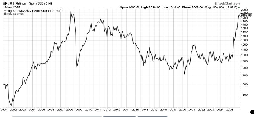 Platinum has traded over $2,000/ounce overnight. That’s a 17-year high. What’s next in 2026? Investment Director Tom Dyson calls it ‘the gold catch up trade.’ That’s where other metals (precious and base) and other real assets (especially energy) imitate gold’s performance.