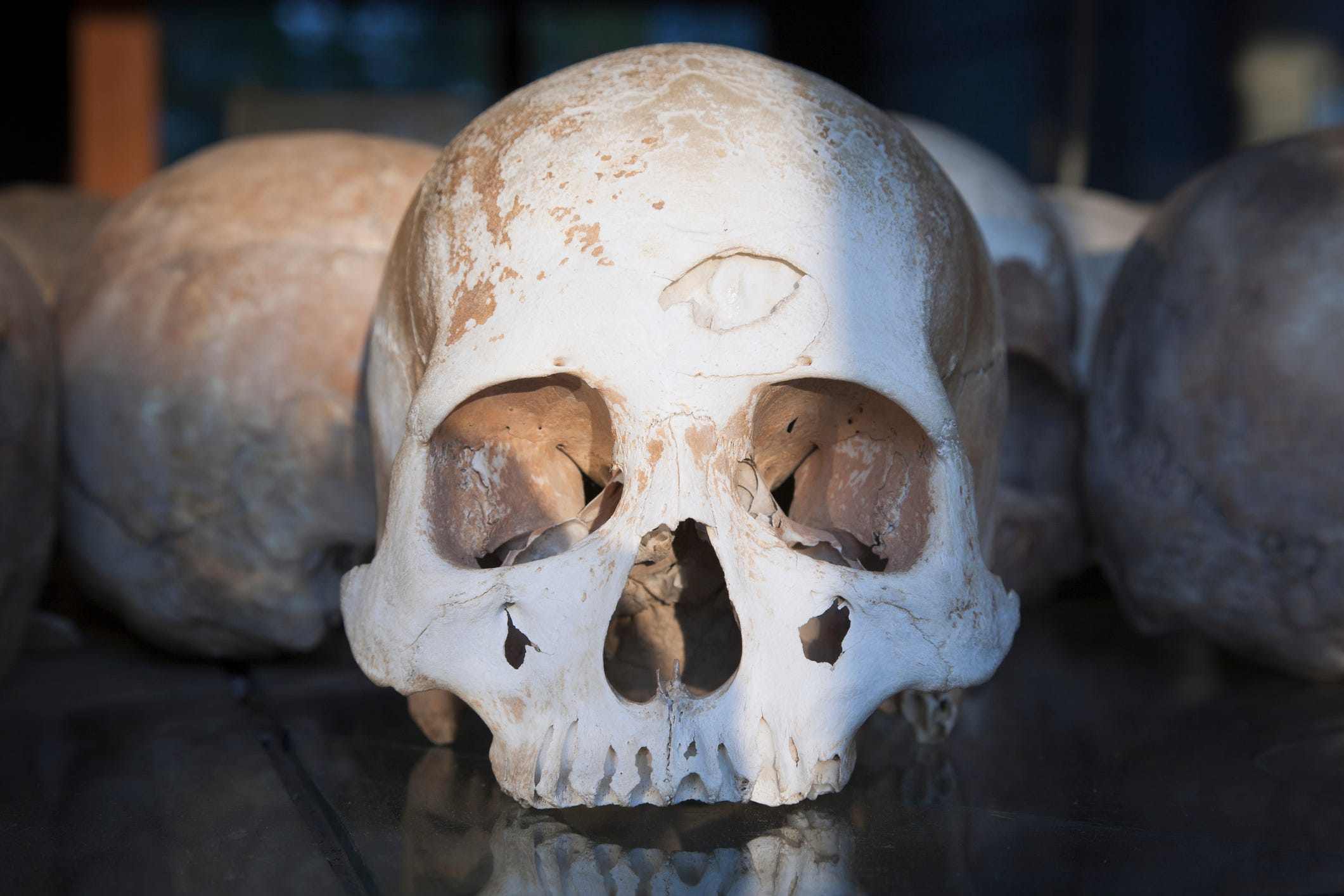 But that was probably the least harmful thing the leaders did. The Khmer Rouge exterminated anyone they regarded as an intellectual. Wearing glasses, for example, was practically a death sentence. They exalted the peasantry. The cities were cleared out...with forced marches into the countryside, where former accountants and drug store clerks were required to labor in the fields from sunup to sunset.