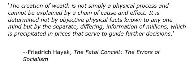 The reason for this was best described by Friedrich Hayek in his ‘Fatal Conceit.’ The feds just don’t have the detailed knowledge necessary to make intelligent decisions. And the more they try to run things, the more damage they do.