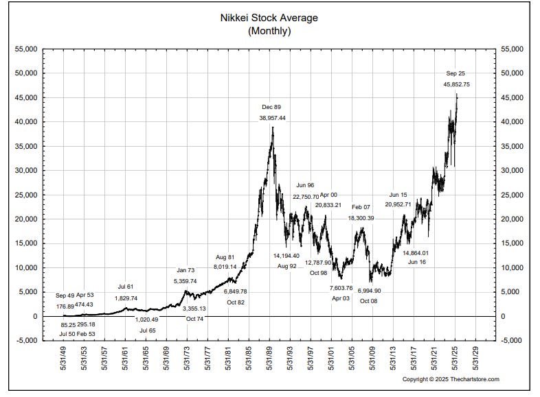 But even in Japan, the familiar pattern of boom-bubble-bust rules. Policies don’t eliminate it. They make it worse. And the bust came in 1990. The Nikkei Dow, then at 38,000, retreated to a low of 7,000...and didn’t recover until last year — 35 years after the crash.