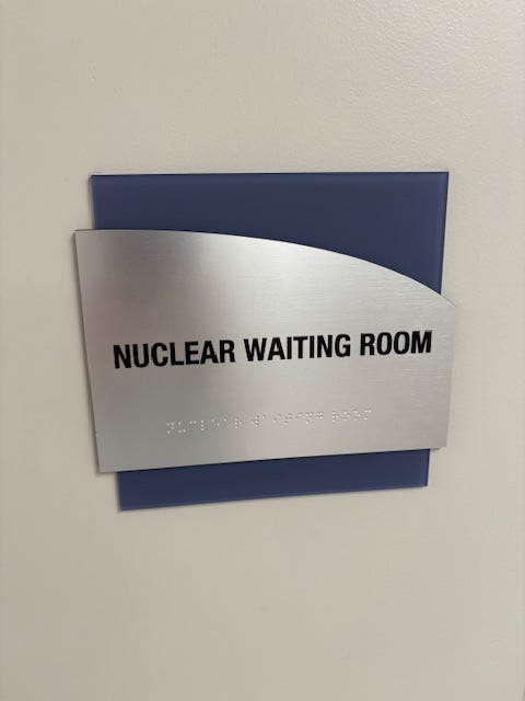 Yesterday, a visit to the doctor took us to a waiting room with this sign attached: