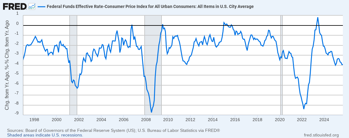Instead, it pushed them down...and left them below zero — after inflation — for much of the next 13 years, 2008–2021.