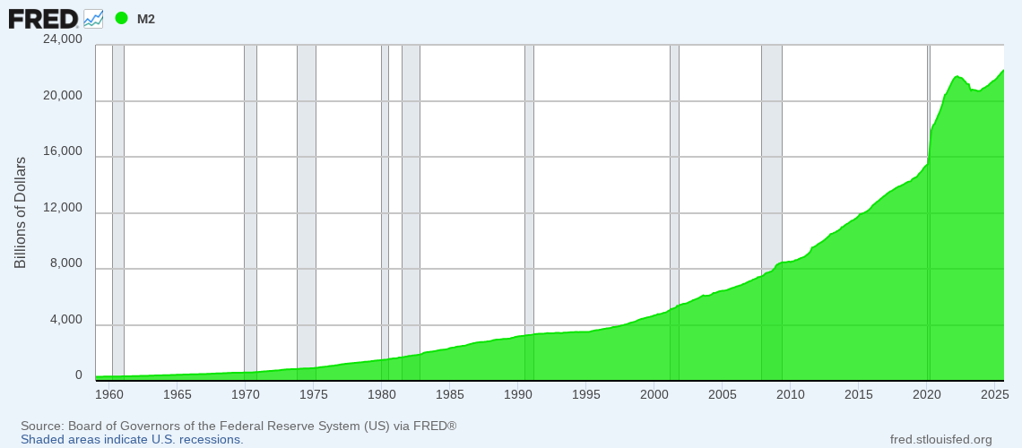 Also in the news, the money supply (M2) in the US just hit a new record high, at $22 trillion. That’s up from just $650 billion in 1971, when the Funny Money Era began. In that year, GDP was around $1.2 trillion; it’s now $28 trillion. In other words, the money supply has grown about half-again-as-much as the supply of goods and services.